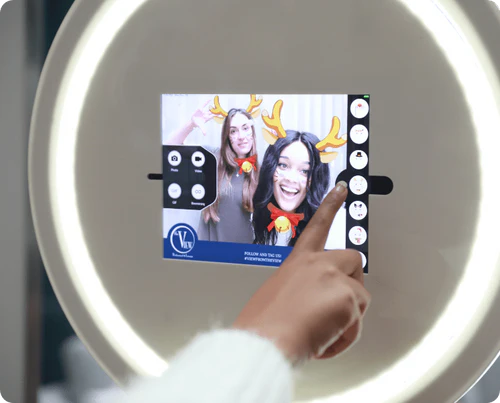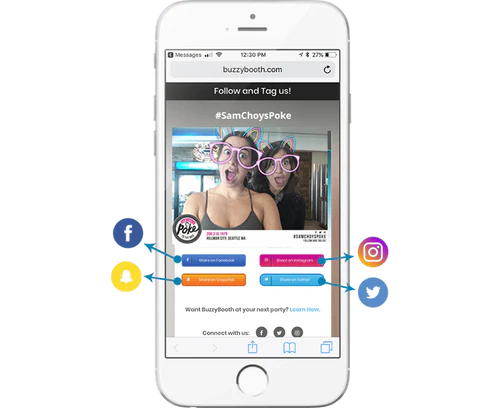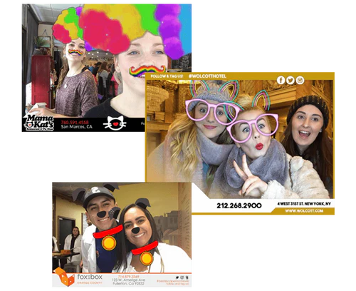 Customers come up to the BuzzyBooth, can select different fun snapchat like filters, take photos or videos with your restaurant's branding, and send it to themselves via email or phone number. They can then share the photo on their social media with our easy mobile sharing feature!